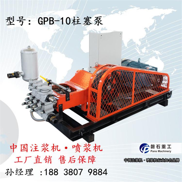 GPB-10柱塞泵可按泵体、动力机、机架三大件分解运输,在修理时,泵体、电动机可全都拆卸。