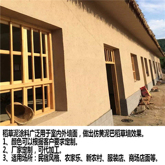 随着科技的发展,人们也逐渐研究出了黄泥墙的替代品,那就是稻草漆,它是由稻杆、蜘石粉、微空粉末、石英粉等天然材料制成,可厚可薄,施工简单,并且材料内的稻杆经过特殊处理,不助燃,不掉渣,不需要每年维修,成本较低,即使是室内施工也是干干净净,而室外也可以达到八年以上的质保!