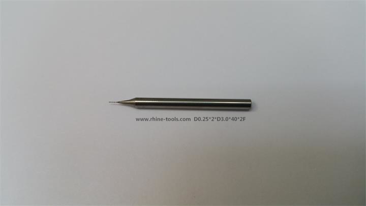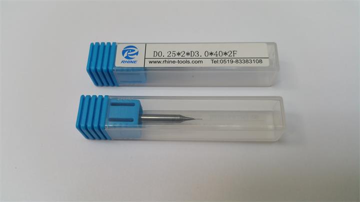 RHINE硬质合金微小径铣刀选用德国牌号K39超细微粒硬质合金棒材,瑞士进口用于生产超微小径刀具的数控磨床加工,出厂逐支检验合格后发给客户,了每支微小径铣刀具有精度高,跳动小,品质稳定,使用寿命长的特点;可以替代进口,公司可为客户生产直径D0.05mm/0.06mm/0.07mm/0.08mm/0.09mm/0.1mm/0.15mm/0.18mm/0.2mm/0.25mm/0.3mm等微小径平刀, D0.2R0.02mm/0.3R0.02mm/0.4R0.05mm/0.4R0.1mm/0.5R0.05mm等微小径圆鼻铣刀和半径R0.05mm,R0.075mm,R0.1mm,R0.15mm等微小径球头铣刀,带避空深沟微径铣刀。的进口材料及纳米涂层,使微小径铣刀加工高硬度材料也能胜任。